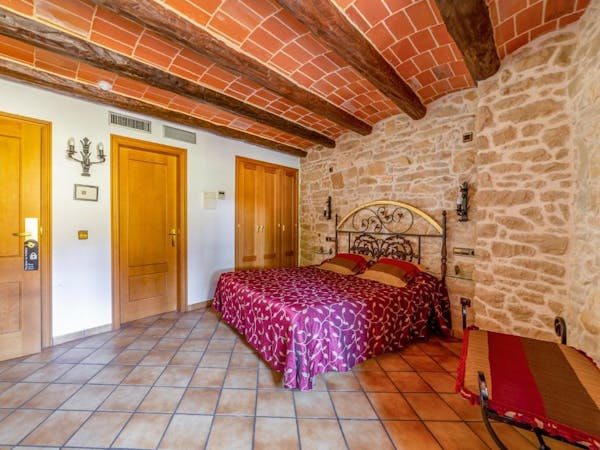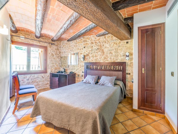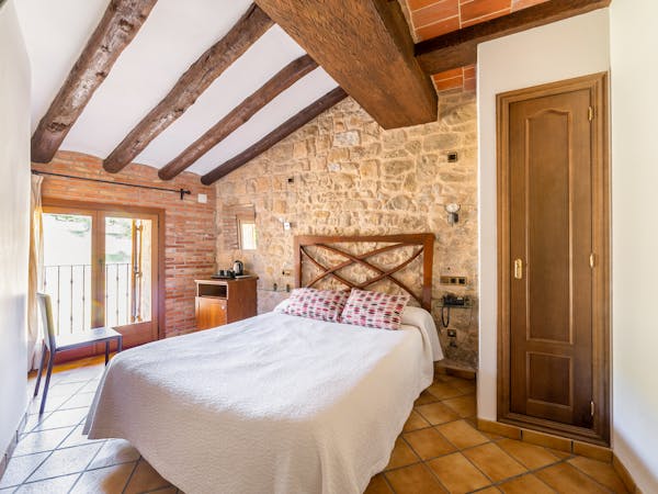 Double room with double bed on first floor with air conditioning, tea/coffee maker, balcony with mountain views and private bathroom with walk-in shower.