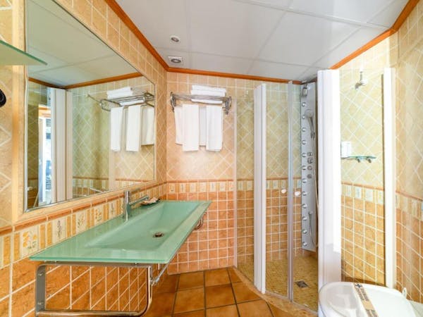 The double room with 2 twin beds or double bed has air conditioning, tea/coffee maker, balcony with mountain views and private bathroom with walk-in shower.